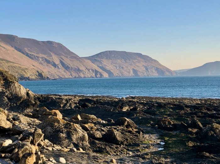 The view from Niarbyl, on the west coast of the Isle of Man looking southwest towards the Calf of Man. March 22, 2020. Tim Cullen.