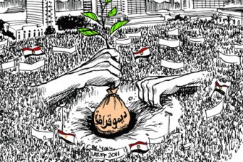 Carlos Latuff has penned some of the most acerbic political cartoons of the Egyptian revolution. One of them shows a shoe hurtling toward Hosni Mubarak, such use of footwear being one of the gravest personal insults in Arab culture. Another iconic image portrays Egypt’s longtime ruler as a diminutive figure, dangled from his collar by Khalid Said, the young Egyptian whose death in police custody fueled the January 25 uprising. Latuff’s cartoons are ubiquitous in Egypt, adorning everything from blog sites and Tahrir Square t-shirts to the front pages of Cairo dailies. Yet, the cartoonist is not an Egyptian, but slings his ink-tipped arrows from a studio in far away Brazil, his native country.