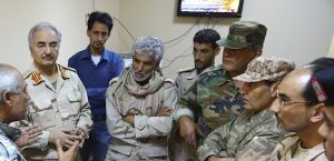 General Khalifa Haftar talk about military operations with Libyan army commanders in Benghazi